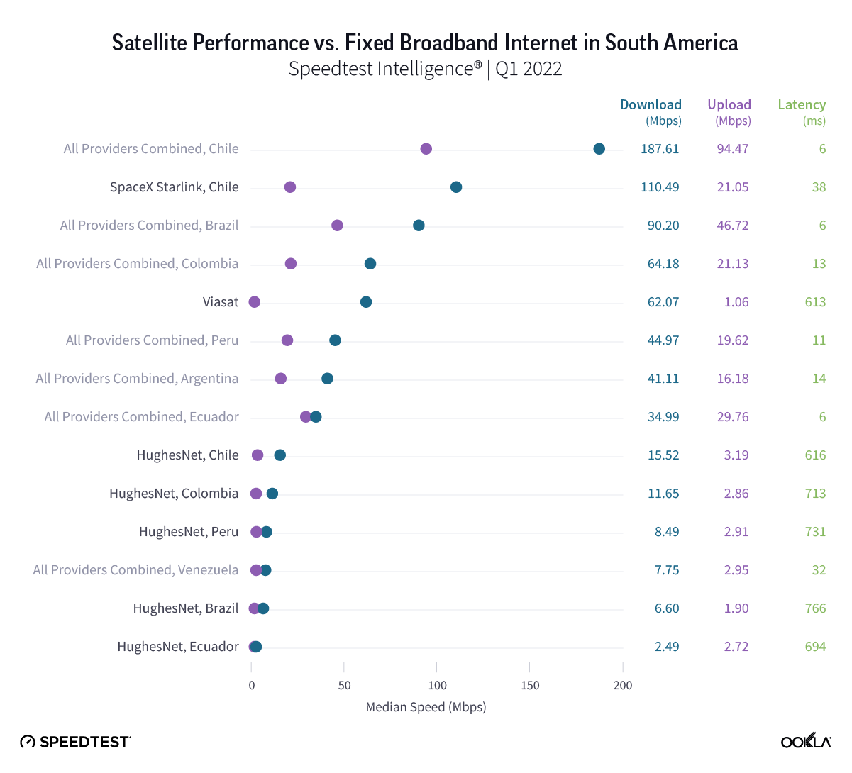 Frente a operadores fijos, Starlink la tiene más complicada en Chile. El país lationamericano tiene la segunda mejor conexión fija a internet en el mundo, según SpeedTest.