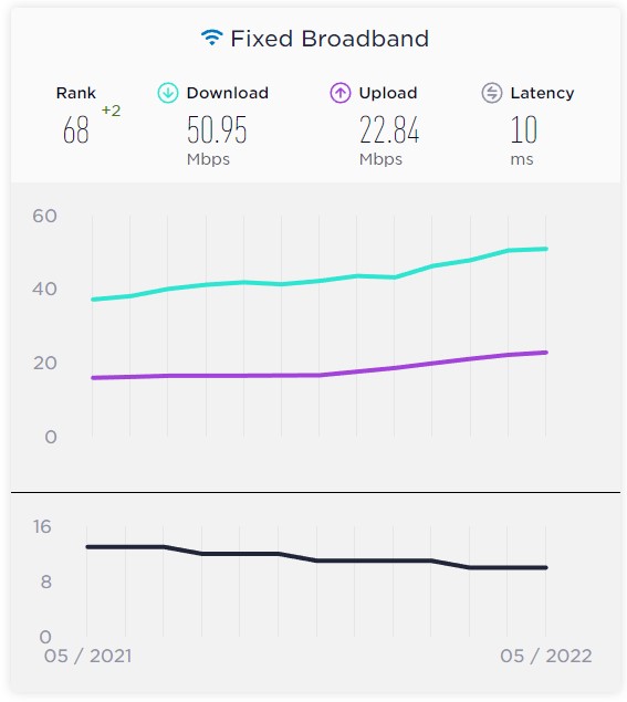 Y si medimos la latencia frente al internet fijo, no hay comparación cuando estos servicios llegan a máximos de 14ms.