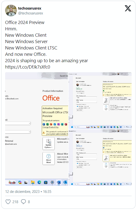 En la captura de pantalla se puede leer que se está usando la versión Preview de Microsoft Office 2024, la cual no requiere suscripción, pero sí una clave de producto y su correspondiente activación. Lo único que deja abierta una ventana para la desesperanza es ver que en la foto se indica que se trata de la versión LTSC, por lo que, en este caso concreto, no estaría disponible para todos los usuarios. Pero se cree que, si existe esta edición de Office 2024, también estará la versión que puedan utilizar el grueso de los usuarios de ordenadores con el sistema Windows.