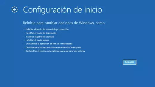 Desde el símbolo del sistema: pulsa Windows + R para abrir Ejecutar y en el cuadro de texto o escribe "Símbolo del Sistema" o "cmd" en la barra de búsqueda. Una vez dentro, introduce el siguiente comando: shutdown.exe /r /o. Cierra la siguiente ventana de confirmación, para que Windows se reinicie en modo de recuperación y sigue los pasos de más arriba. Opciones avanzadas > Configuración de inicio > Solucionar problemas.